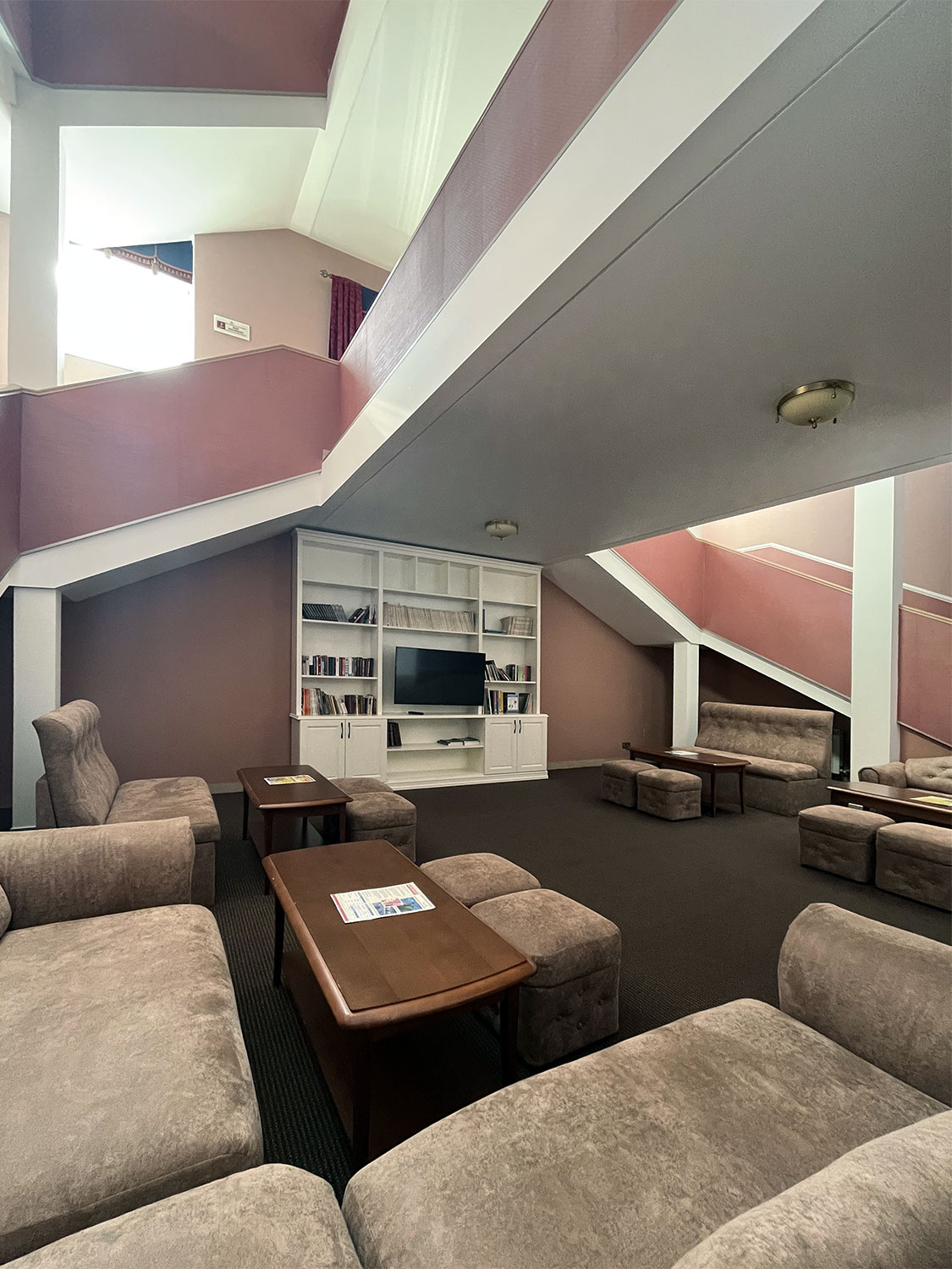 Зона отдыха оборудована мягкими удобными диванами, где можно почитать или просто расслабиться. Там также есть место для настольных игр и плоский телевизор.